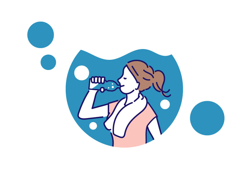 人間は体の水分量が常に平衡になるように自動で調節してくれていますが、汗をたくさんかいたときには体内の水分量が少なくなるので、積極的に水分を摂る必要があります。 少しでも喉が渇いたと感じた時はすでに体が脱水状態になっているため、水分補給が必要となります。