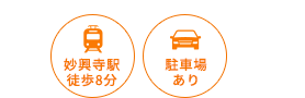 ⑨駐車場完備/完全予約制で待ち時間もなし