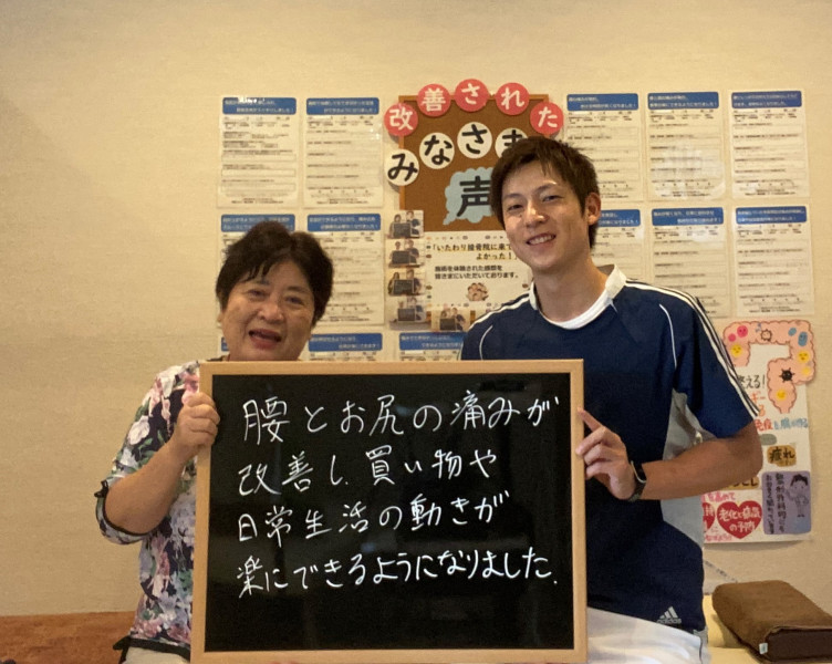 「整体を重ねるごとに痛みが軽減し、姿勢がよくなり外出時の不安もなくなりました。」