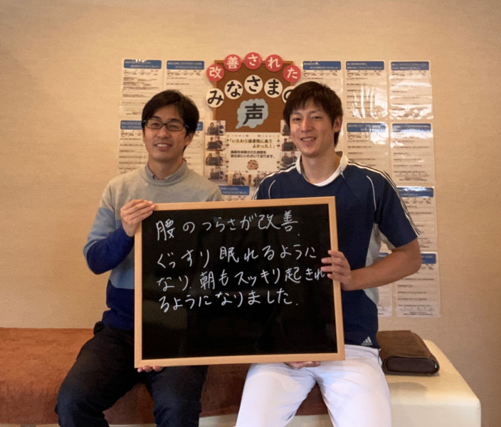 初診の時に腰痛の原因と姿勢の崩れについて詳しく教えていただき、自分の体の状態を知ることができました。